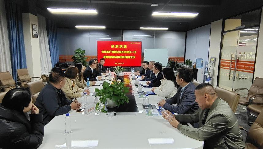 六、11月12日下午,贵州省广西商会会长覃儒珍,贵州省广西商会执行会长潘生达,贵州省广西商会秘书长谢燕,重庆市广西商会秘书长潘奕尘一行考察会长浙江甲骨文科技集团、杭州吧啦熊自动化科技有限公司,并与商会企业进行友好交流。