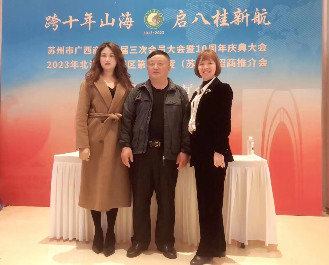 五、 11月11日,商会副会长蓝同胜、唐坤英,理事刘勇,商会秘书处龚明佑、莫丽静参加了苏州市广西商会的“跨十年山海 启八桂新航”三届三次会员大会暨十周年庆典活动。