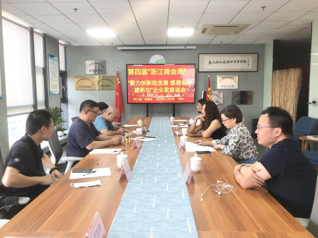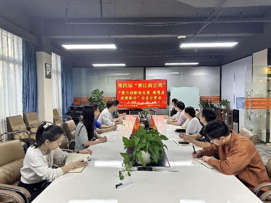 一、11月3日,商会秘书处在商会办公室和会员企业单位开展第四届“浙江商会周”,以“聚力创新助发展感恩奋进建新功”企业家座谈会。