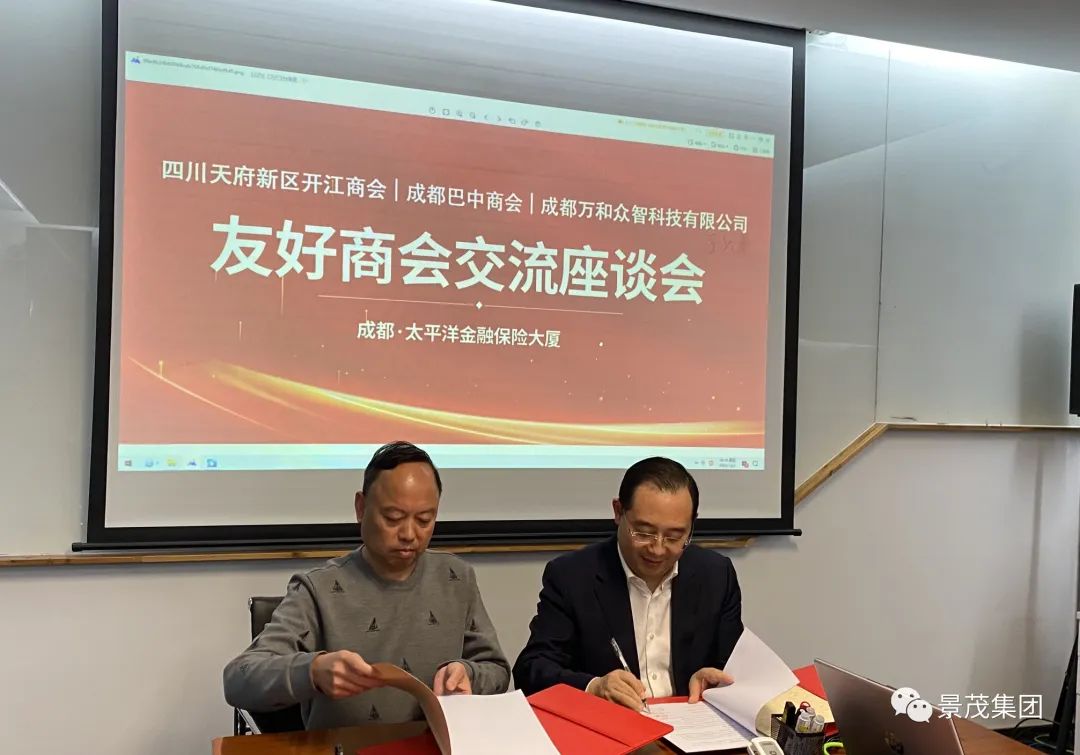 在座谈会前,现场参观成都巴中商会会长企业-万和众智财税服务集团,了解其26年来的发展过程及产品。随后开江商会秘书长李明武、巴中商会秘书长张雄各自介绍了商会近年的发展情况以及取得的成绩,在双方会长发言中都希望两商会在现有关系的基础上进行更深层次的合作,落实到会员间,落实到具体实践中。整合优势资源,借助商会平台,促进会员企业间更频繁、深入的交流、互动与合作,为两商会企业的发展提供更多机会。并且在现场进行了天府新区开江商会与成都巴中商会友好商会签约、天府新区开江商会与万和众智财税服务集团战略合作签约,两会发展迈入新台阶,座谈会最后双方合影留念、餐叙交流。