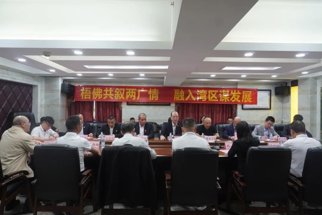 佛山市广西梧州市商会会长龙树新、梧州广东商会会长王文辉梧州分别通报了商会建设情况,双方在友好氛围中开展交流,聚乡情谋发展,为今后梧佛两地经济往来搭建交流平台,双方愿意建立友好结对商会。