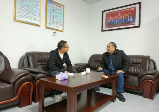 11月13日,江西忠科实业集团营销副总经理陈仕明到商会走访交流,秘书长邓思科热情接待。