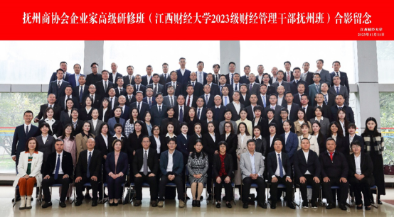 11月11日,抚州商协会企业家高级研修班(江西财经大学2023级财经管理干部抚州班)开班仪式在江西财经大学青山园校区学术报告厅举行。抚州市商协会企业家120人参加开班仪式和开学第一课。我商会会长李信德,党支部书记、常务副会长陈德勋,常务副会长陈守意、张步存、缪佰仕、周育海、黄瑞奖、何文华、王彬、马介青、谢志长、吴建华、王晓曼,副会长来长妹、李以维、欧亦雨、彭瑞想,理事胡惠群、翁雅,新入会会员胡美红,秘书长邓思科等22人参加研修班学习。李信德会长被推举为研修班名誉班长,王彬常务副会长为组织委员。