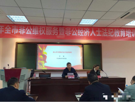 11月30日,抚州市2023年非公维权服务暨非公经济人士法纪教育培训班在市委党校开班。市工商联党组成员、副主席王繁凡主持开班仪式并讲话。各县(区)工商联分管副主席、县(区)非公维权服务中心主任(负责人)、县(区)工商联所属商协会秘书长、商协会民营企业家代表、市工商联所属商会秘书长和商会会员企业家代表,以及市非公维权服务中心工作人员等共计近百人参加培训班学习。商会积极组织会员企业参加培训。