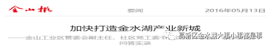 1.2016年金山工业区社区党工委书记沈继祥在参加问答访谈时表示,金水湖产业社区一期一共规划了两所幼儿园,一所小学和一所初中。