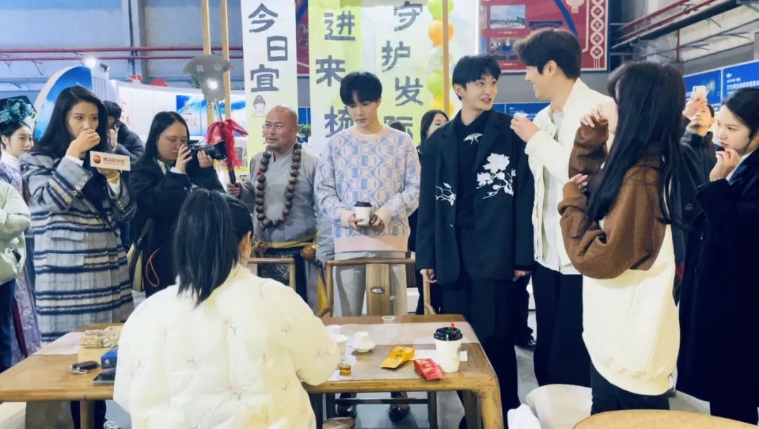 丁嘉文、曹曦月、权沛伦、杜容一、黄雯卿5名青年演员也“闻香”来到金华馆,品尝了东阳东白茶、磐安芡实茯苓糕、义乌麻糖等美味,大赞“好吃”“再来一个”。