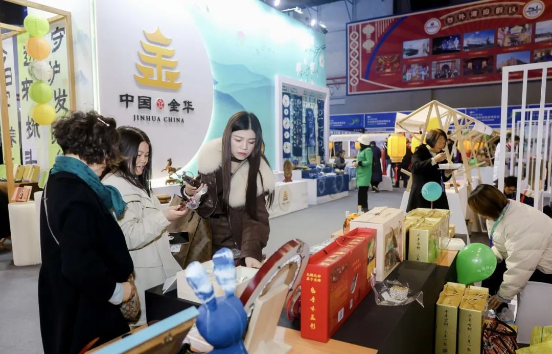 此次盛会上,金华馆带来了婺城扎染、金东盘纸、万佛塔杯垫礼盒、张大酥糕点、兰溪土蜂蜜、金华山心意、东阳梵沐记、永康植物印染、浦江米胖糖、磐安八珍糕等优质金华文旅特色产品,琳琅满目的展品吸引了一批又一批的观众驻足欣赏和购买,体现了我市深厚的文化产业发展功底,提升了金华文旅品牌的美誉度。