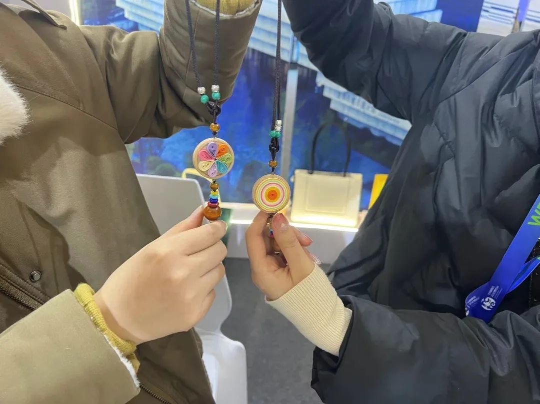 现场能亲手体验的盘纸成为展区内的一大“香饽饽”,动手制作的人一拨接一波。“一开始,他们都觉得挺难,但是动手后觉得很有意思,已经有企业联系我要定制产品了。”奇艺工作室负责人邵丽萍说。
