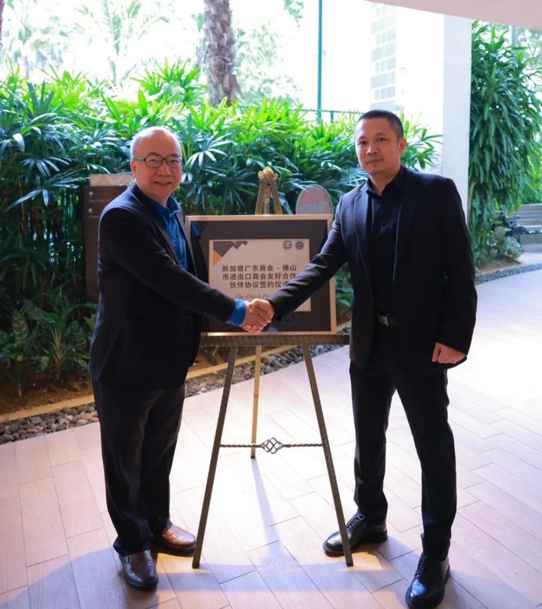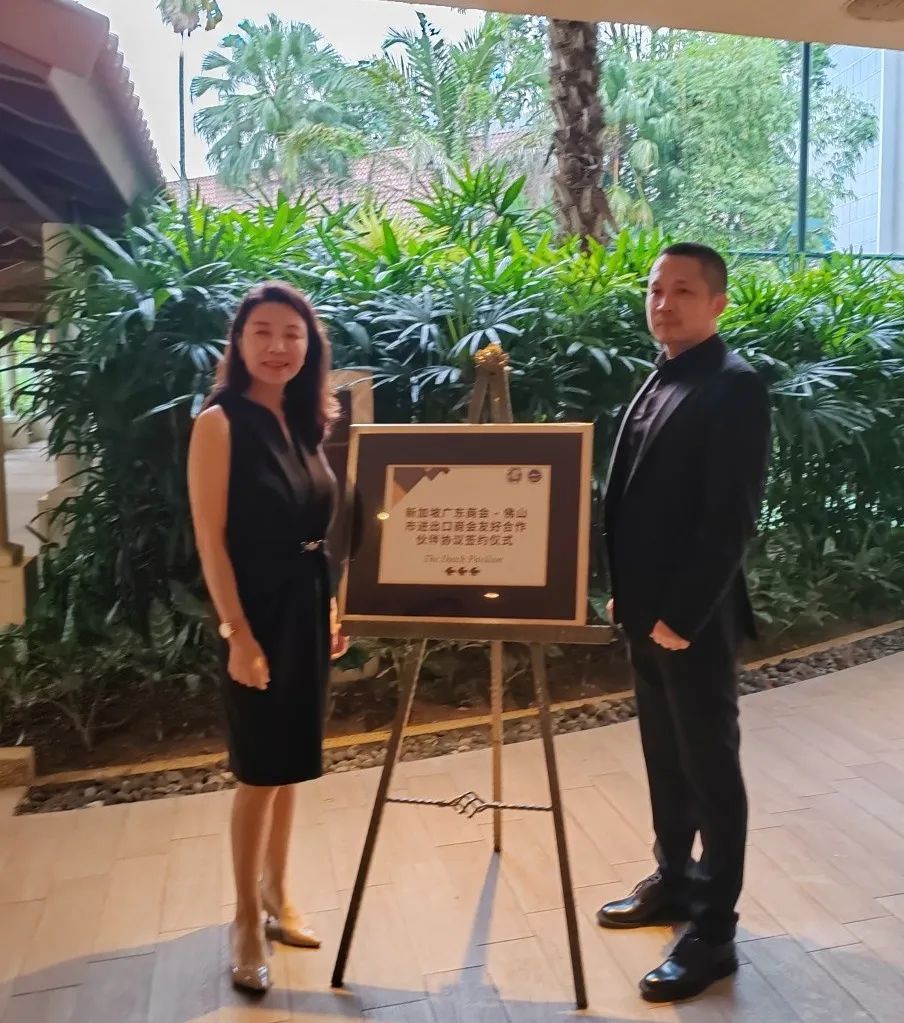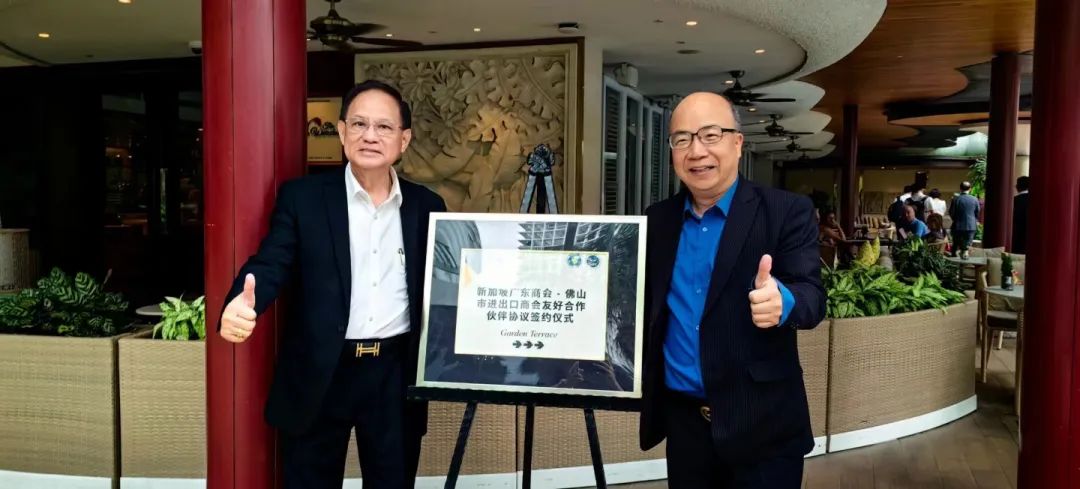 佛山市进出口商会蔡伟生执行会长兼秘书长与新加坡广东商会邱江峰秘书长签署友好合作伙伴协议; 佛山天艺文化传播公司和新加坡Multiway Intherational Consultancy Pte Ltd公司签署合作意向书,该公司在新加坡及全球范围内提供全面国际教育解决方案和相关服务(还有两地企业:广东顺德绿碧蓝家居公司&Singrass公司、佛山和光国际供应链公司&珠江永康物流(新加坡)公司、佛山怡康医疗科技公司&NKroborics公司等签署合作意向书)。
