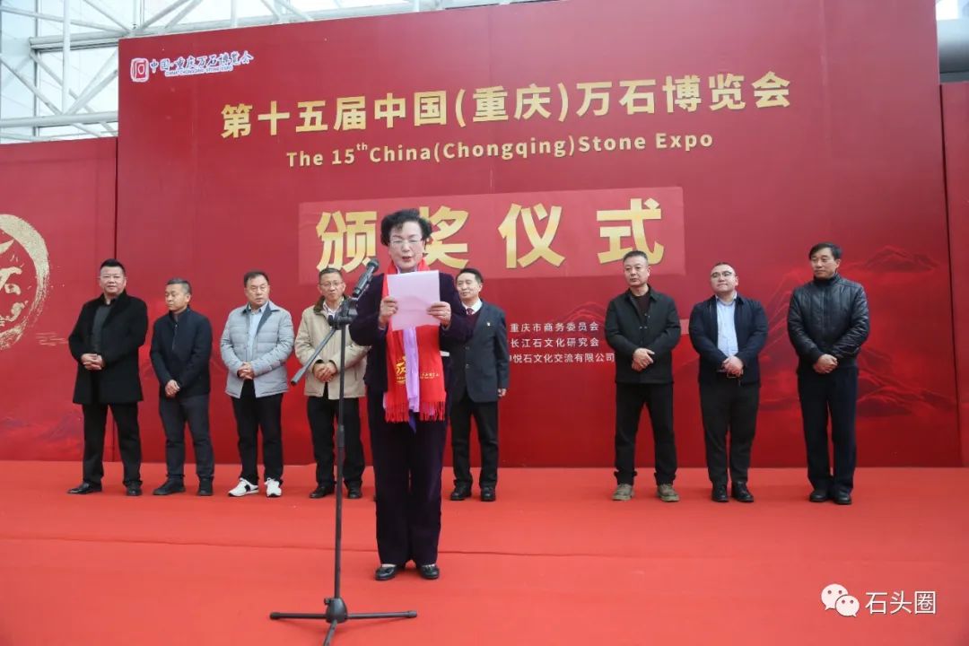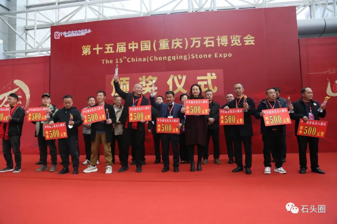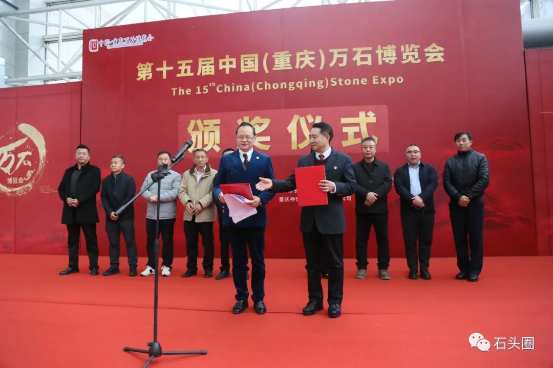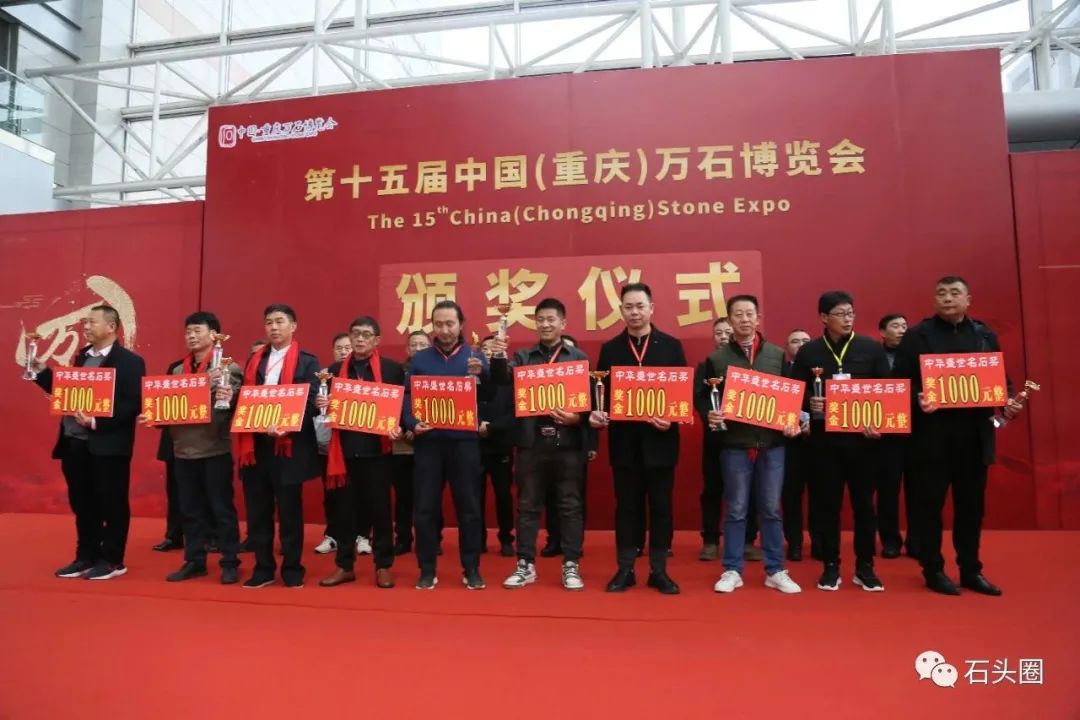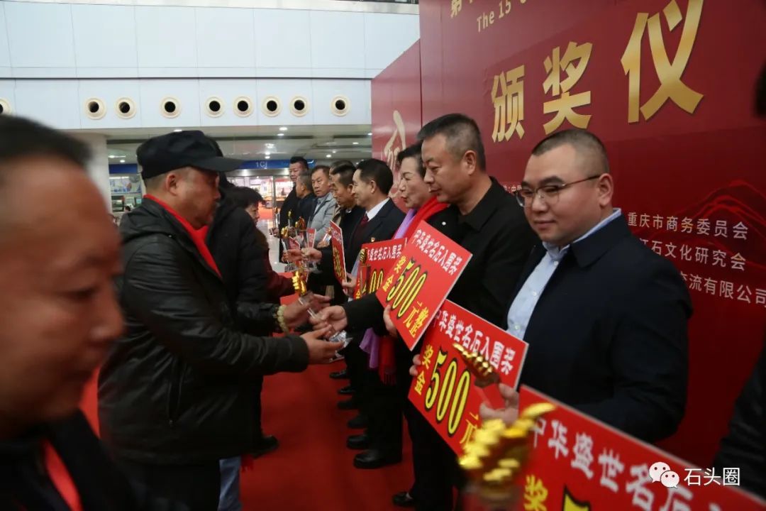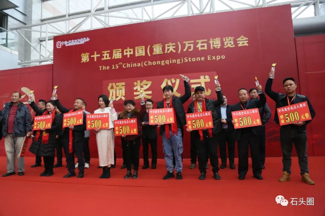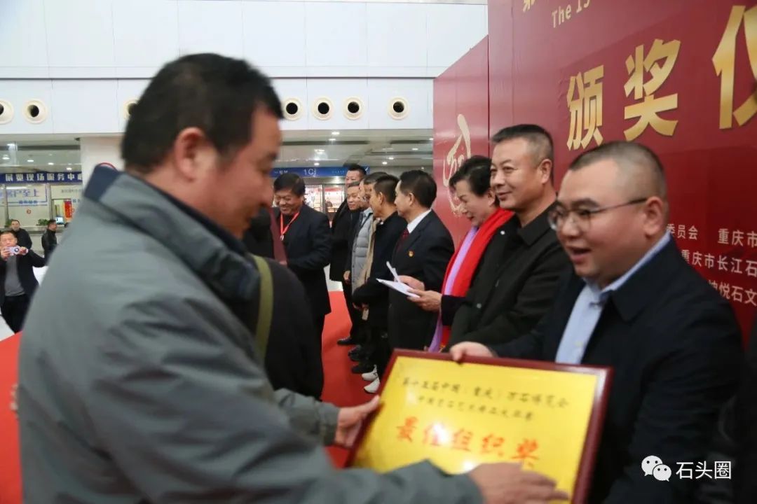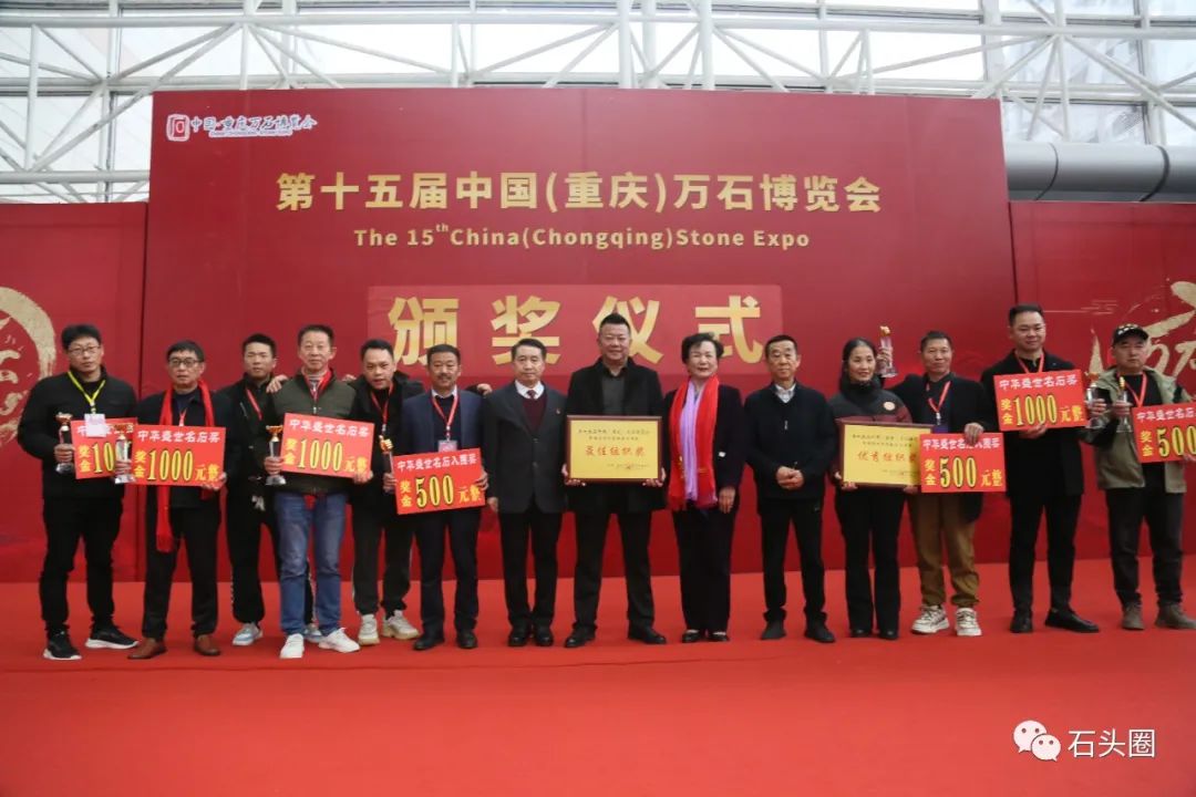 12月1日下午,重庆国际会议展览中心舞台前,领导嘉宾和石友们再次齐聚一堂,共同见证了第十五届中国(重庆)万石博览会的精彩时刻。本届精品展共展出了1200余方赏石作品,每一方都展现出了中华赏石文化的独特魅力。经过评委评定,各奖项的获奖者终于揭晓。其中“中华盛世名石奖“、“中华盛世名石入围奖“及其金银铜奖、”最佳组织奖“、”优秀组织奖“的获奖结果在此一一揭晓。让我们通过马勇老师的镜头,一同去收获第十五届中国(重庆)万石博览会颁奖仪式的喜悦吧!