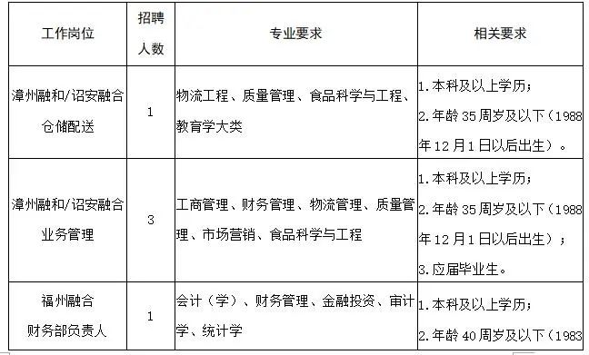 2.漳州融和/诏安融合业务管理 3人
