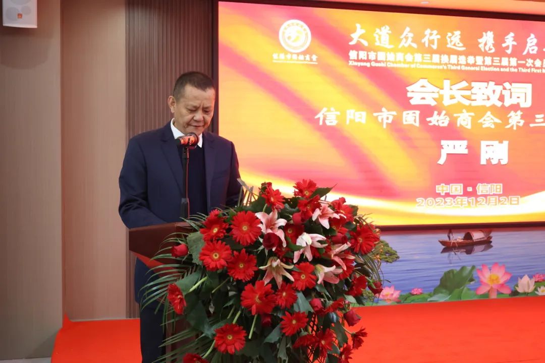 12月2日上午,信阳市固始商会三届一次会员代表大会在信阳市固始商会顺利召开。会上,胡族籍企业家严刚当选信阳市固始商会第三届会长。市政协副主席、工商联主席李俊杰,市委统战部副部长、市工商联党组书记、常务副主席宋昊,市民政局党组书记、局长方建平,县人大常委会主任苏锦峰,县委常委、统战部部长胡冰等领导,信阳市湖北商会、新疆固始商会、合肥固始商会及在信阳的固始企业家代表等100余人到场祝贺。