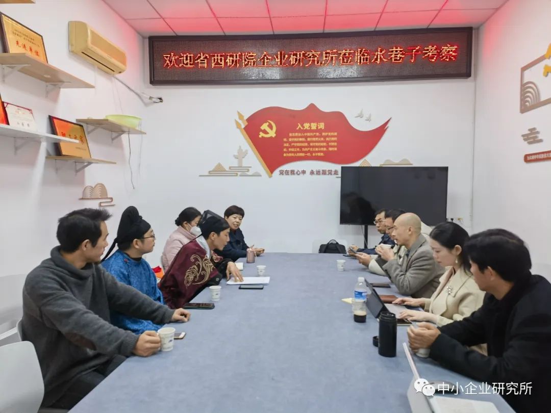 2023年12月1日,西研院中小企业研究所受邀至资阳市雁江区资溪街道桂花井社区,与社区党委成员班子及水巷子文创街运营组委会、资阳汉服协会团队成员,以“文创带动产业,打造智慧城市”为主题进行深度座谈,并走访水巷子街区,深入了解产业结构及发展需求,探讨可持续发展的道路,努力实现共同富裕。