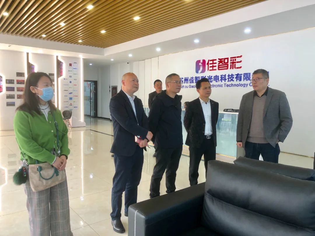 苏州佳智彩光电科技有限公司董事长陈显峰、创始人刘品德热情地接待了商会一行。在刘总的带领下,商会一行参观了佳智彩展厅,随后双方开始座谈和交流。