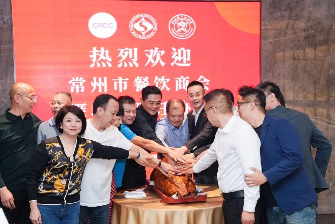 在晚宴上,常州、深圳与顺德三地的餐饮界同仁共同主持具有岭南特色的风俗仪式——切烧猪。烧猪色泽鲜亮红润,寓意着三地餐饮行业红红火火。