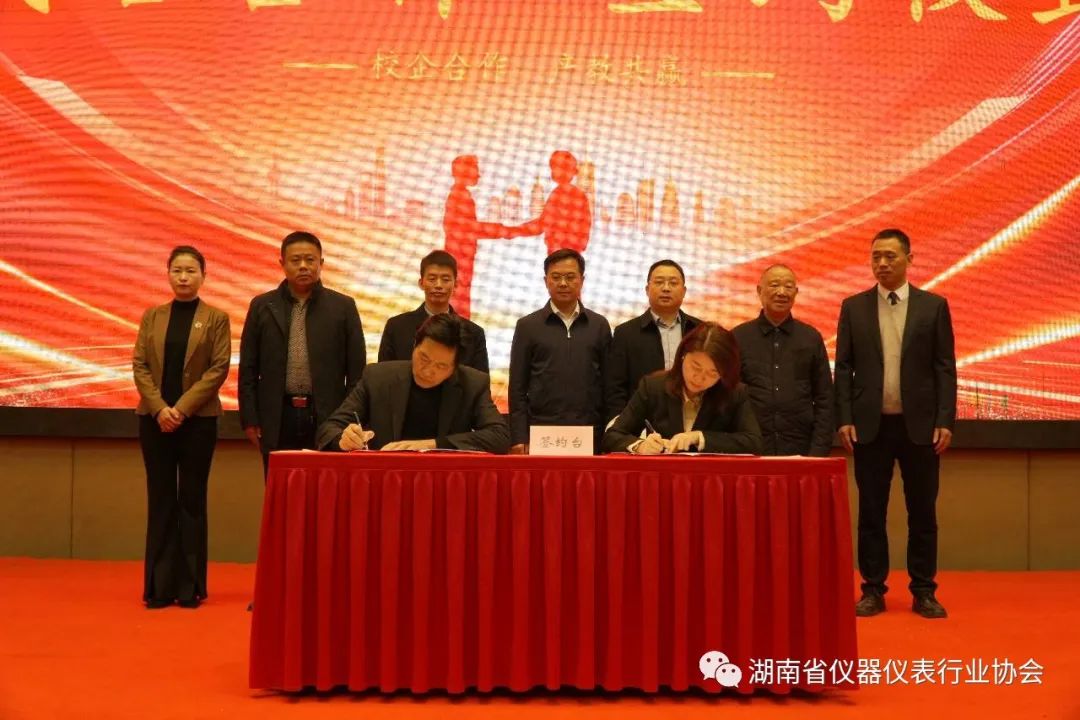 在合作签约环节,湖南省仪器仪表学会理事长单位湖南科技大学和湖南省仪器仪表行业协会轮值理事长单位长沙开元仪器有限公司签订了战略合作协议,双方的合作为湖南省仪器仪表行业的产教融合提供了典型案例。必将从科研成果转化、创新型人才培养等方面推动仪器仪表产业高质量发展谱写新的篇章。湖南省工信厅和湖南省科协领导及合作双方代表共同见证了本次签约。
