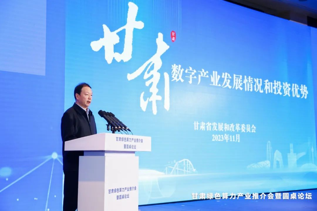 甘肃省委常委、副省长张锦刚出席推介会并致辞,代表甘肃省委省政府对参加推介会暨圆桌论坛的嘉宾表示欢迎和感谢。张锦刚在致辞中表示,甘肃是全国一体化算力网络国家枢纽节点布局之一省份,正在深入实施“优化营商环境攻坚突破年”行动和“引大引强引头部”行动,政策叠加、优势凸显、商机无限,是投资兴业的理想地。甘肃热切期待与各位专家、企业家朋友一道,在数字经济基础设施建设、技术创新应用、算力运营消纳、产业生态构建等方面深化合作,合力打造全国数字经济创新引领区、产业集聚区和应用先导区,共享数字蓝海新机遇、共创数字时代新未来。