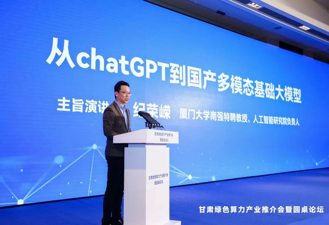 庆阳市委常委、副市长徐刚重点推介了庆阳市数字产业及重点招商项目。主题演讲环节,易股天下集团董事长易欢欢,厦门大学人工智能研究院负责人纪荣嵘教授,浙商银行副行长景峰,弘信电子董事长李强和燧原科技创始人张亚林,分别以“即将到来的AGI和元宇宙2.0时代”“从chatGPT到国产多模态基础大模型”“智金融,算未来”“绿色算力生态与商业模式创新”和“绿色算力需求下的AI基础设施”等为主题展开分享。