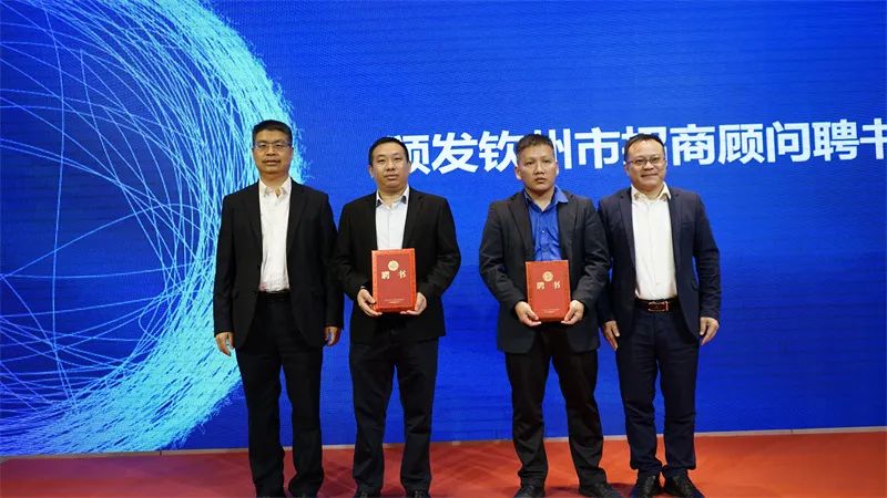会上,陈正理副主席、杨劲松局长为广东省先导智能终端产业技术研究院执行主席李烨、络鑫科技有限公司经理蒙进东颁发钦州市招商顾问聘书。