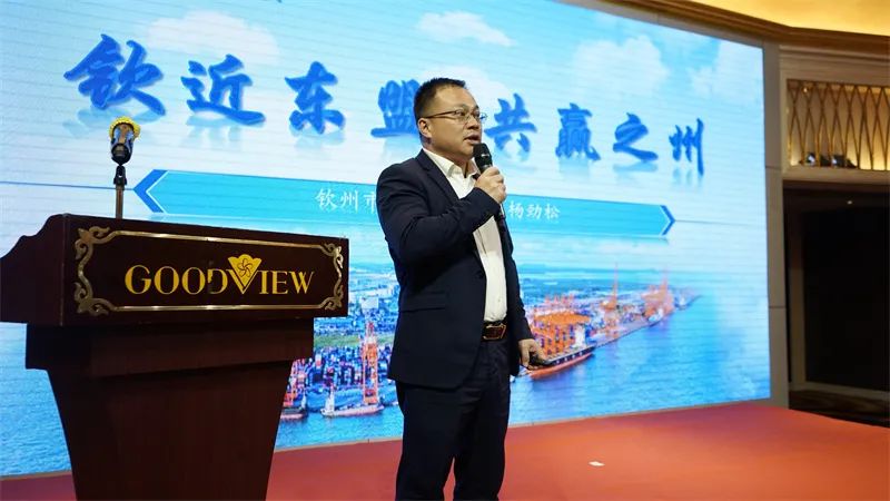 市投资促进局局长杨劲松重点介绍钦州的战略优势、区位优势、场景优势和政策优势,并对中国—东盟合作区钦州片区相关政策进行了解读。