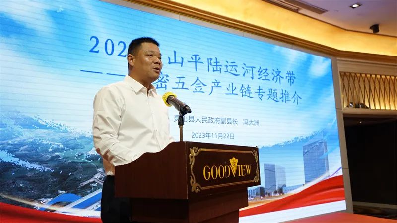 灵山县副县长冯大洲围绕灵山县发展情况、发展优势、投资环境作了介绍,并重点推介灵山武利工业园整体规划布局以及招商方向。
