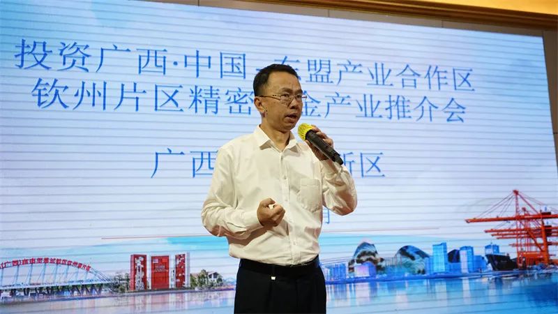 钦州高新区管委副主任周路围绕高新区的基本情况、产业承载平台、投资优势进行了专题推介。