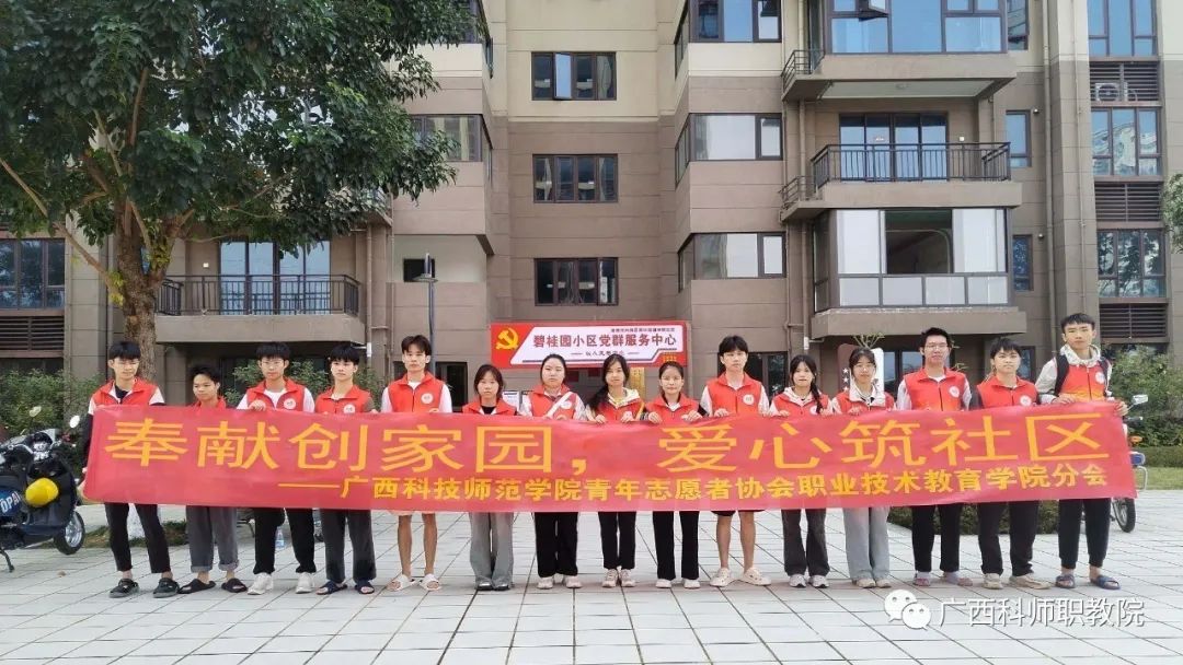 2023年11月25日,校青年志愿者协会职业技术教育学院(上汽通用五菱汽车产业学院)分会在来宾市兴宾区碧桂园社区开展“奉献创家园,爱心筑社区”志愿服务活动。