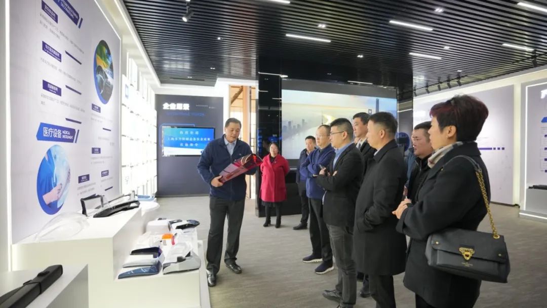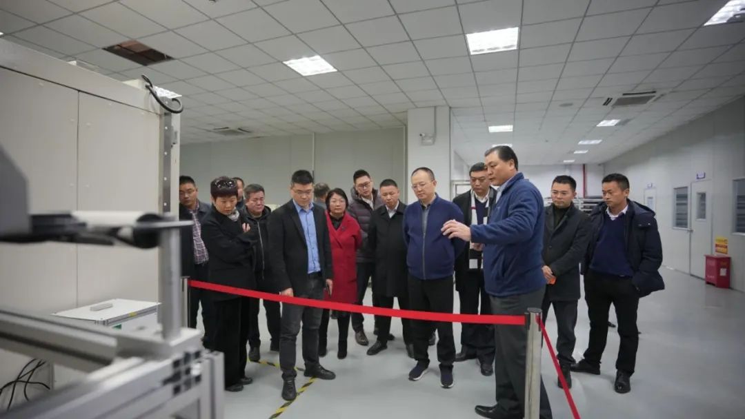 誉球董事长刘君、总经理方奇才陪同理事会成员参观公司的实验室,生产车间。