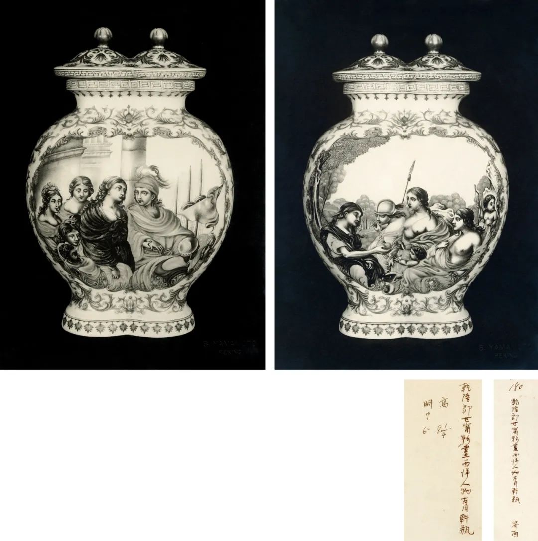 山本照相馆 清乾隆珐琅彩西洋人物图双联瓶照片(2张)