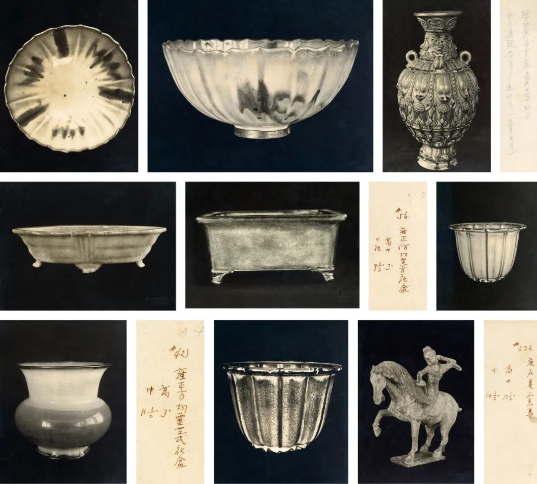 山本照相馆 钧窑瓷器一组及青釉莲花尊及骑马陶俑照片(9张)
