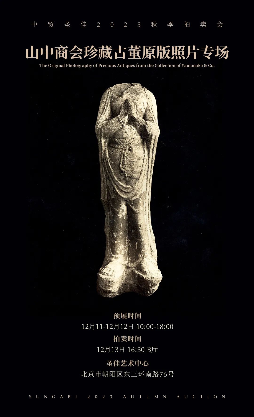 本次中贸圣佳2023秋拍“山中商会珍藏古董原版照片专场”汇集3000余张山中商会旧藏原版照片,其中不乏山中定次郎天龙山考察、山本照相馆摄文物照、山中商会陈列展等重要的一手资料。由山中商会经手的重要器物,现今依然在世界一流的拍卖会上时有所见,仍屡创高价。当我们一次次面对这些时隔百年的影像,不仅可以钩沉民国时期跌宕起伏的古玩艺术品发展历程,也不可或缺的提供了可靠的“证据”,供我们“更加生动地‘想象’过去”。