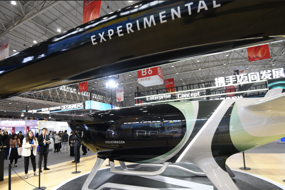 大众汽车集团(中国)展示的首款电动垂直起降(eVTOL)载人飞行器原型机,是其国内首展;