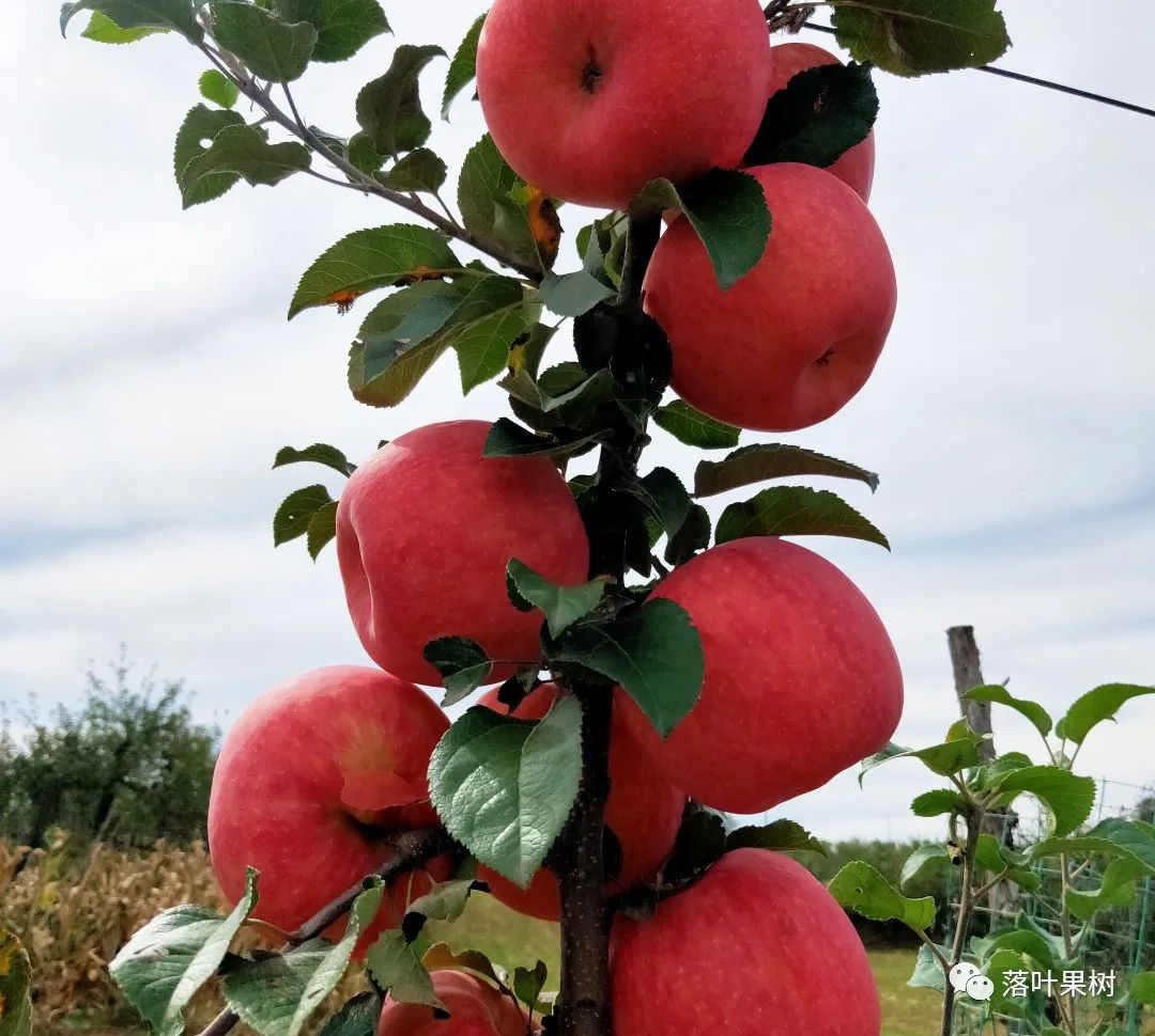 光能高效利用和简化修剪技术。随着现代果业的发展,出于降低成本的需要,不论什么砧木都要培养易于修剪管理的主干形树形(纺锤形)。良好树形的关键是中心干与分枝的差比。修剪要简化,确保树体通风透光,重点进行结果枝组的更新复壮。