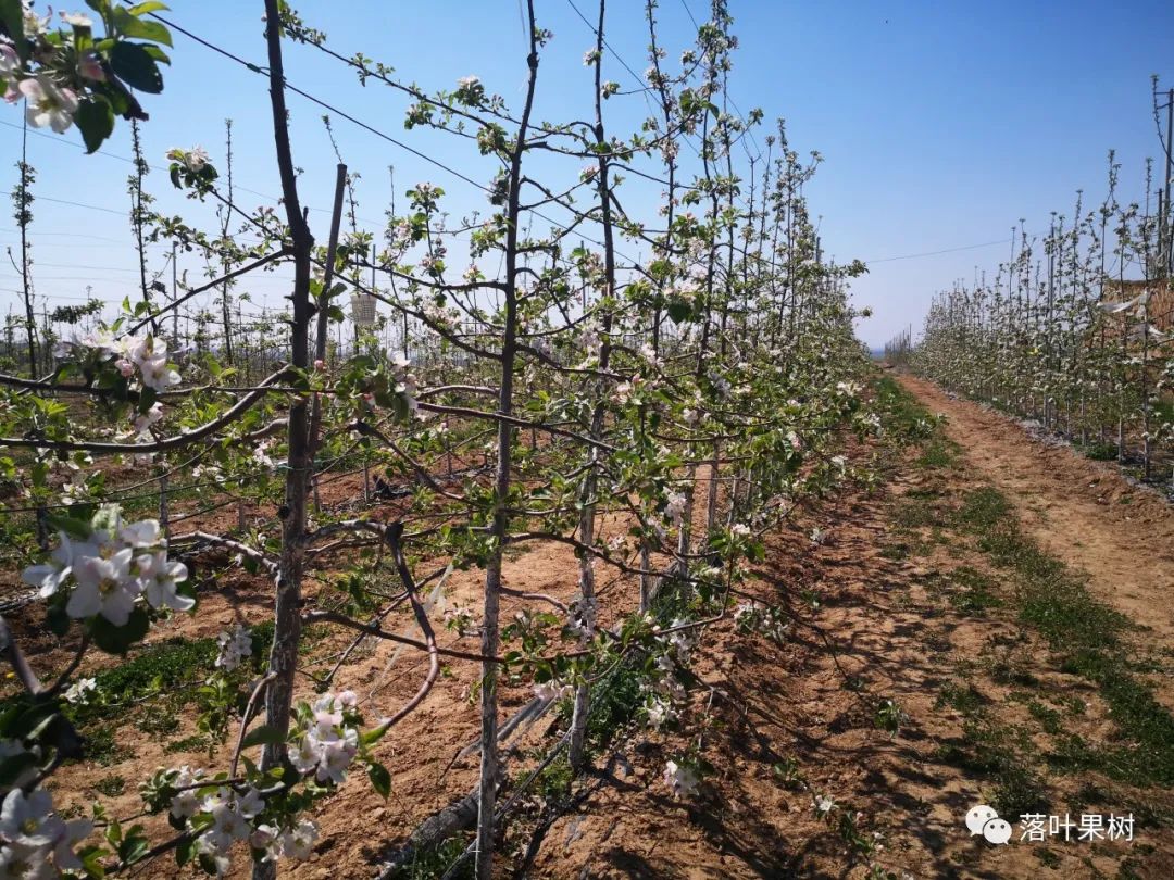 高效花果管理技术。利用现代化化学和机械疏花疏果技术、苹果专用授粉树和高效人工授粉技术以及果实免套袋生产体系,并适期分批采收。