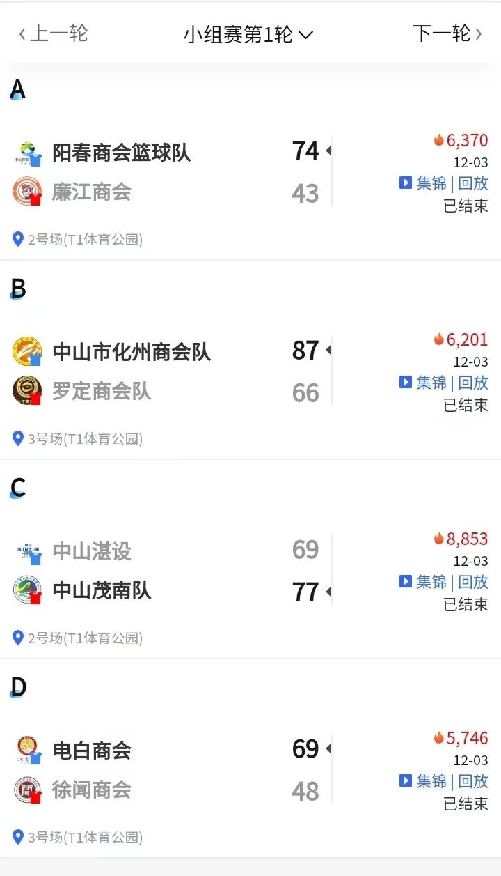 第一轮小组赛比赛结果