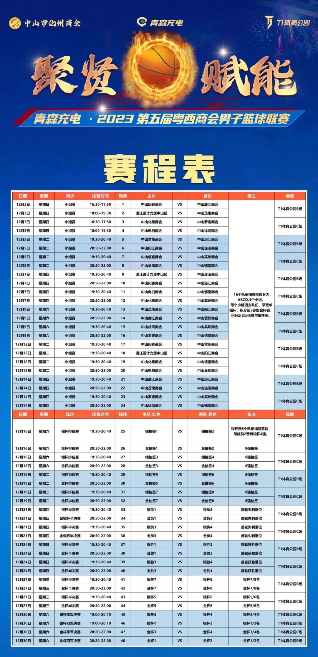2023第五届粤西商会男子篮球赛赛程表