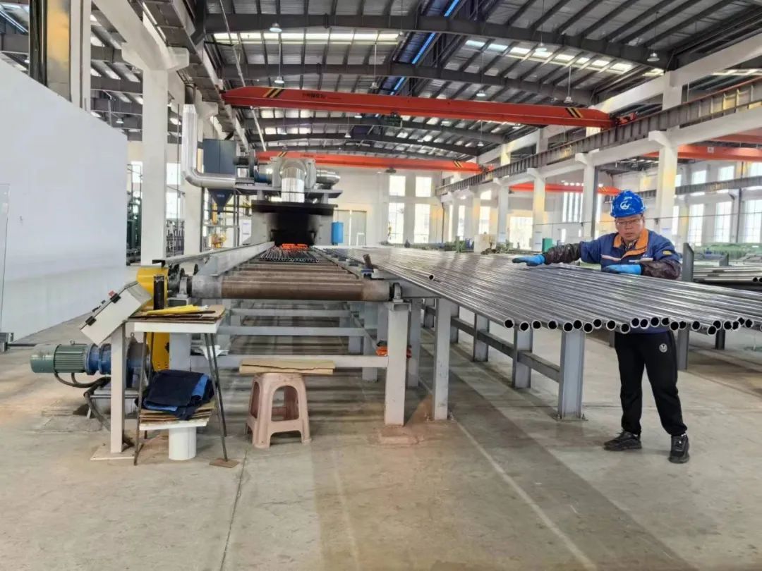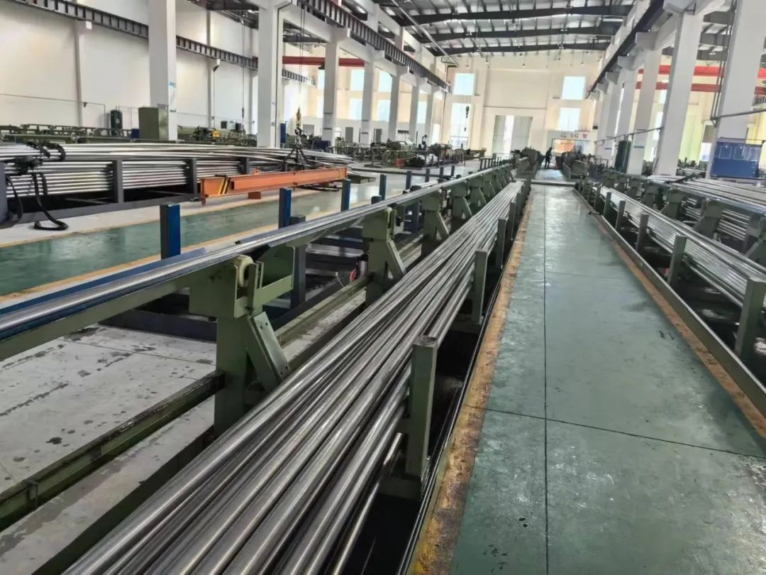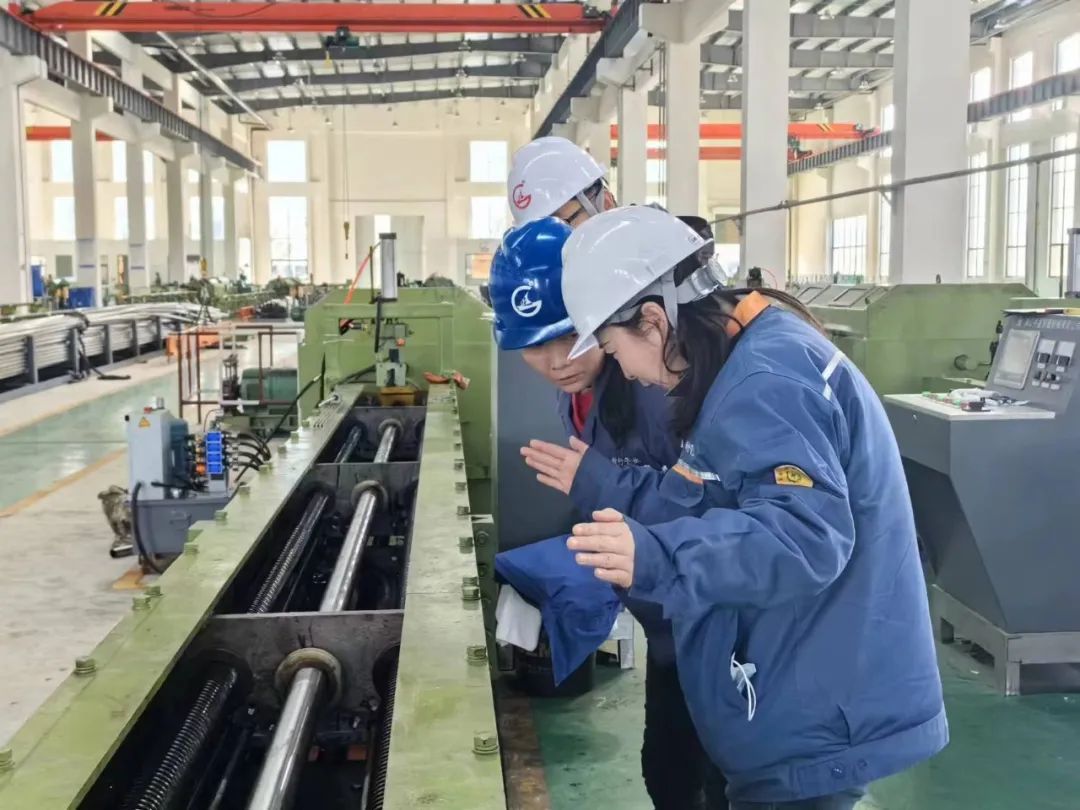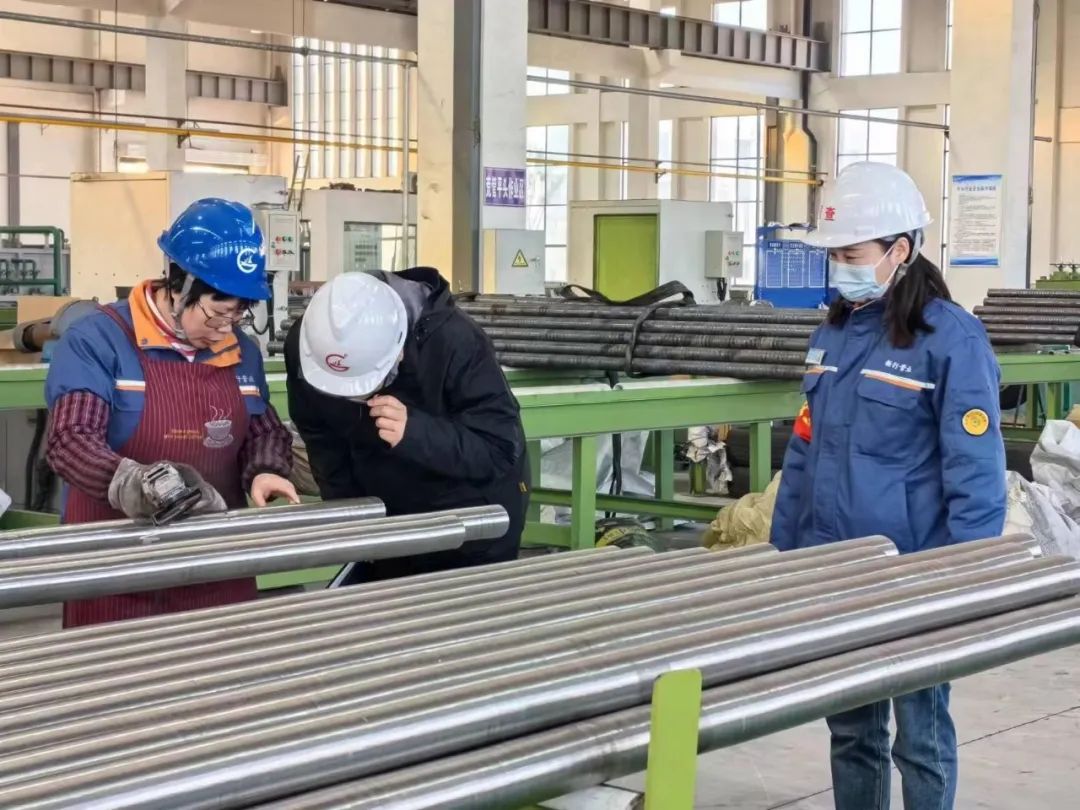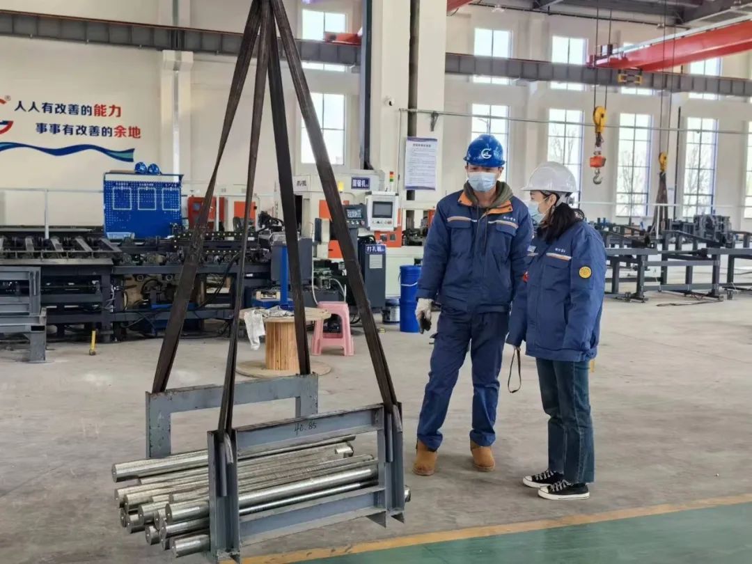 11月28日上午9:00,“响水县不锈钢产业商会·2023 企业行”走进新行管业,公司安排安环部主管崔宁接待我们。 崔主管是徐州人,学习的专业是环境工程,曾在生态化工园 区企业工作,具有丰富的工作经历和经验。她介绍,从原材料圆钢进厂到成品出厂,新行具有独立、完整、全流程无缝钢管的生产工序,8个生产车间功能相对独立,流程又相互衔接。她带我们来到一张“ 厂区平面布置和工艺流程示意图”前说,这张图大致反映了厂区的布局和无缝管生产流程。通过崔主管的介绍,我们了解各个车间的功能和生产流程:穿孔、退火、矫直、酸洗、冷轧、冷拔、检测检验、成品包装。