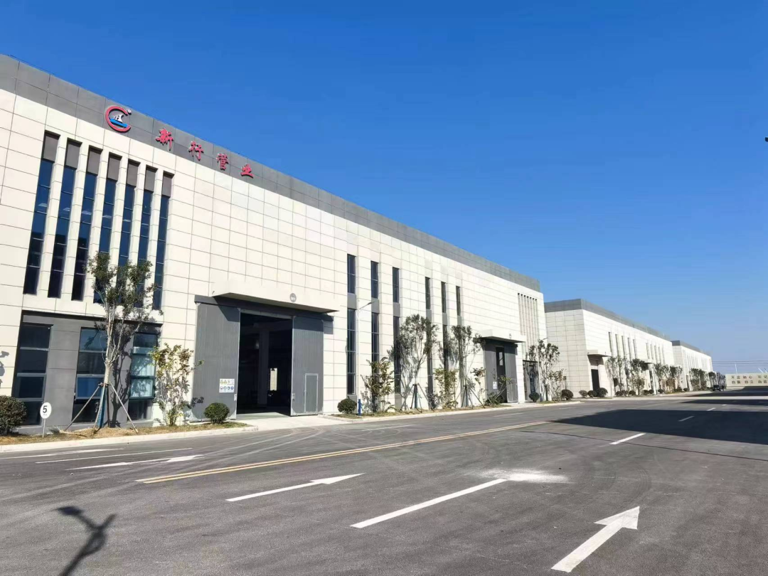 在盐城市响水工业经济区新港大道东首,有一 片整齐排列的多幢厂房,厂房上标有“ 新行管业”红色的字样和红蓝搭配的logo,这里就是园区内单体较大、独家独院的盐城新行不锈钢管业有限公司,其占地160亩,建有8幢标准厂房、一幢综合楼,建筑面积66000平方米。经招商引资, 2020 年10月份开始建设,2023年7月投入生产。