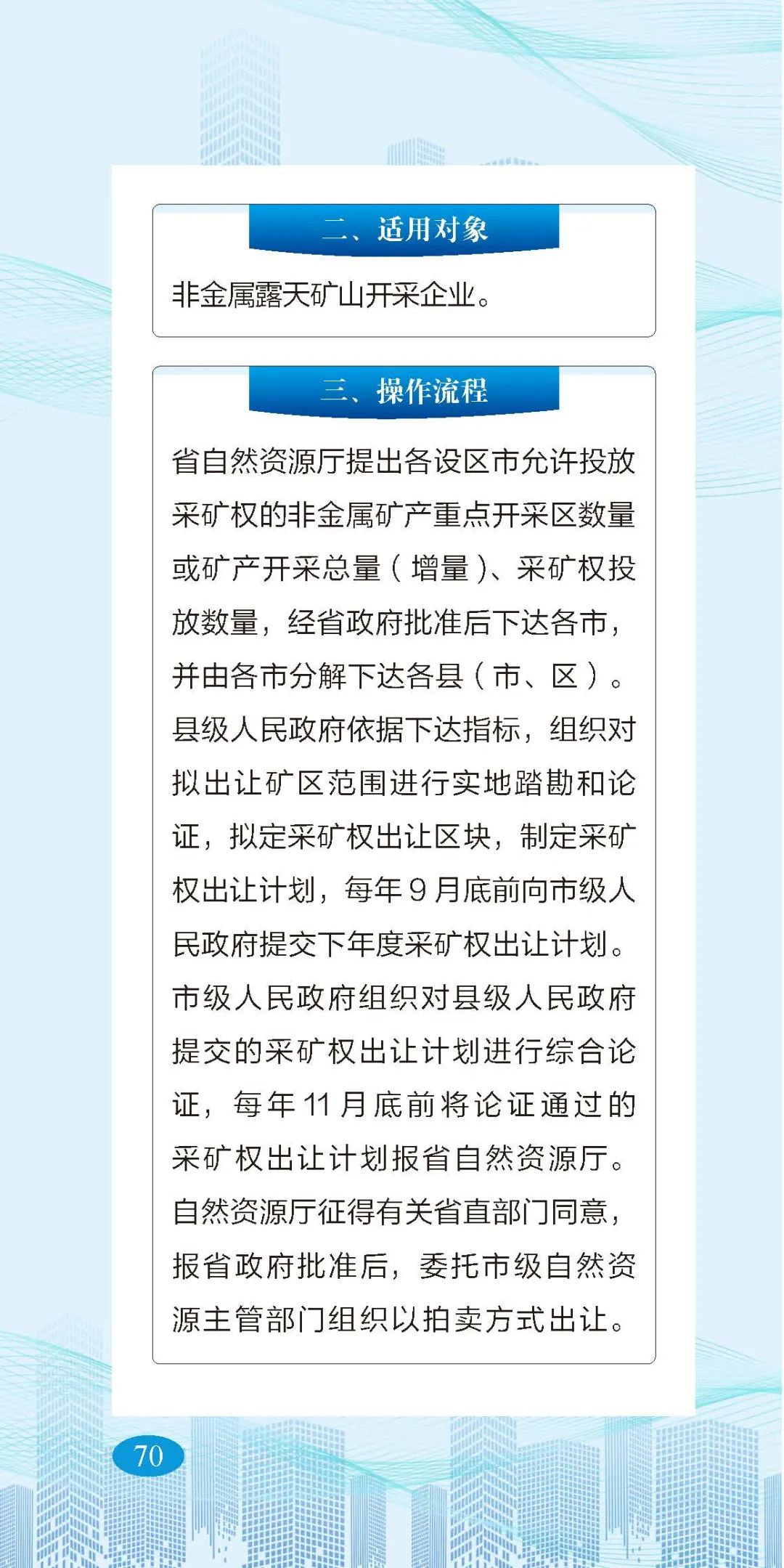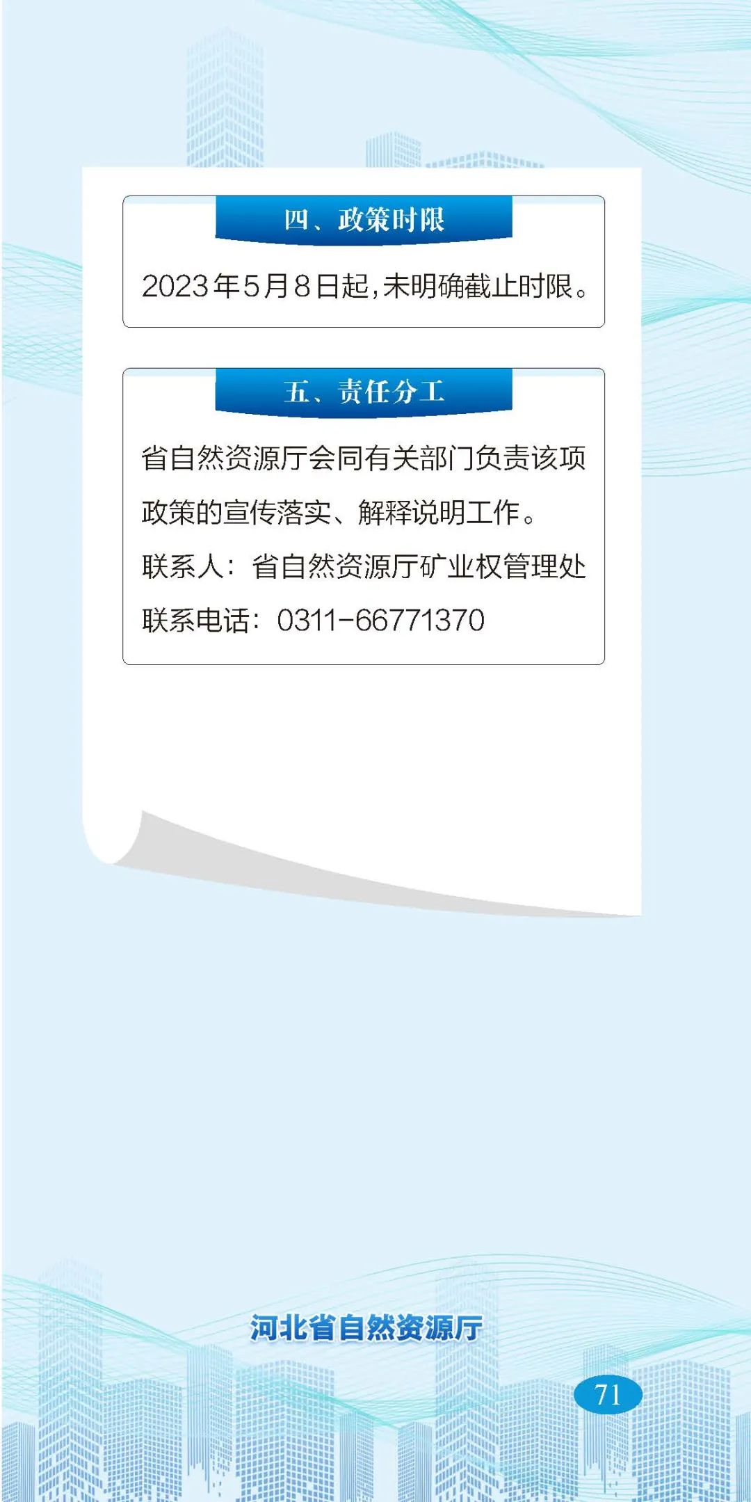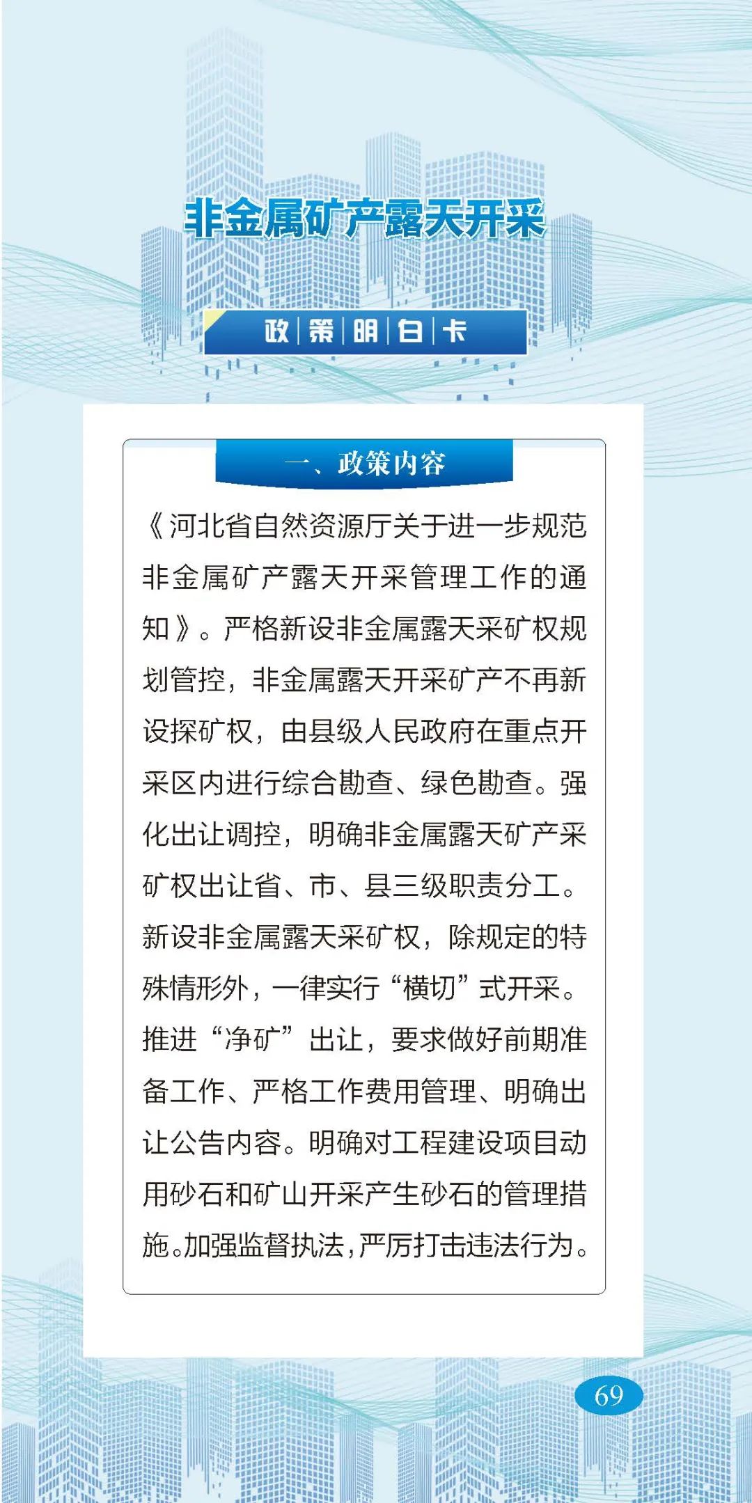 规范开采管理,保障砂石供应,为京津冀生态环境建设提供重要支撑。立足当下治、着眼“长久立“,严格规划管控、强化出让调控,新设“横切”开采、避免出现问题,制定“净矿”措施、保障矿业权益。