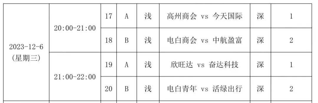 12月6日赛程如下,精彩赛事继续,期待您前来观赛!