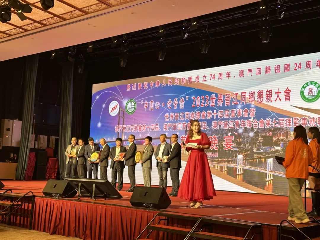 12月4-5日,澳门晋江同乡会隆重举行庆祝澳门回归祖国二十周年、世界晋江同乡总会第十四届董事会暨澳门晋江同乡会第十四届/澳门晋江商会第四届/澳门晋江青年联合会第七届理监事就职典礼联欢晚宴及“中国心∙世晋情”2023世界晋江乡情恳亲大会等系列活动。浙江省福建商会施人玮会长,常务副会长黄国莺,副会长陈华堂、杜泳锋、蒋朝晖、黄培才应邀出席了活动。与来自世界各地的晋江籍企业家及乡贤欢聚一堂,叙乡情,话未来,共襄盛典!蒋朝晖副会长代表商会赠送了贺礼。