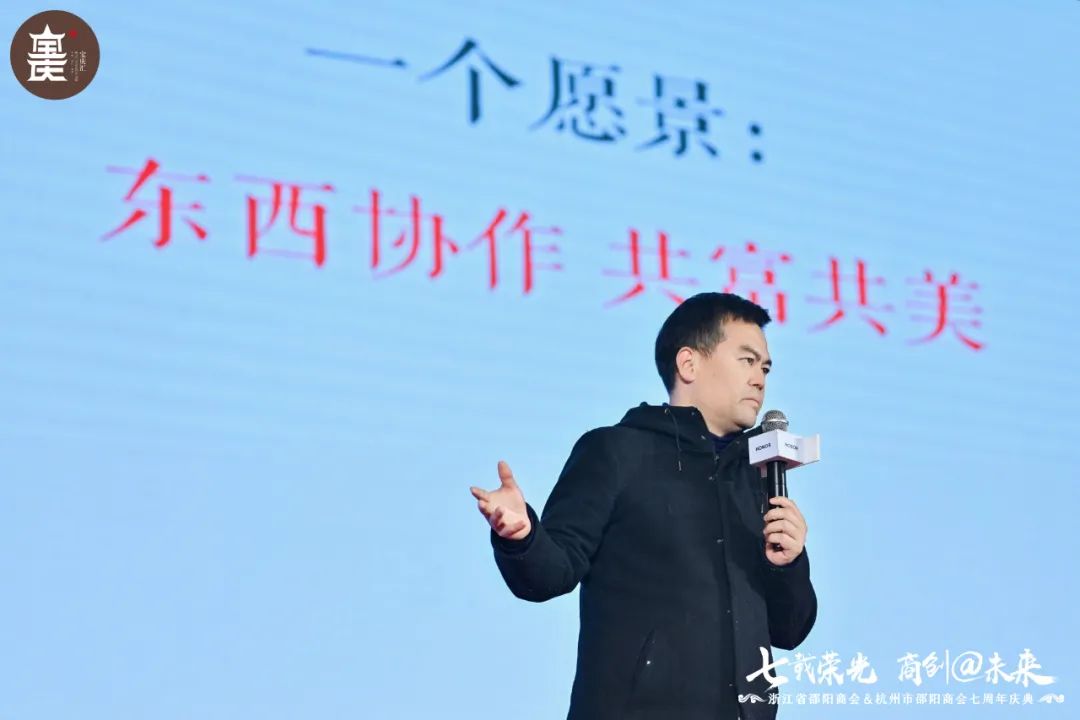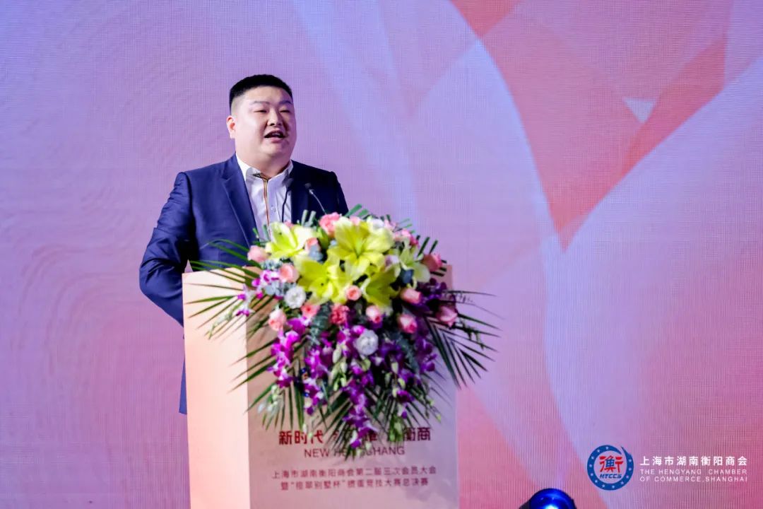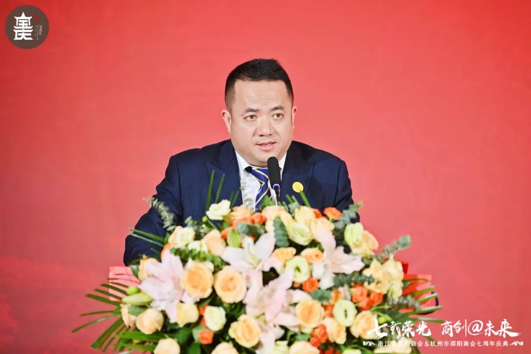 浙江省衡阳商会常务副会长、浙江共合实业有限公司董事会主席刘勇代表异地衡阳商会在大会上致辞。