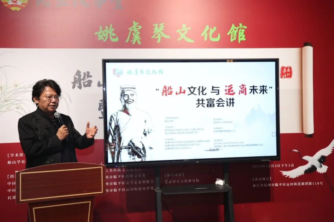 12月3日,“船山文化与运商未来”共富会讲暨姚虞琴书画展在杭州临平区姚虞琴文化馆举行。活动由浙江省传统文化促进会、杭州市临平区政协文史委、杭州市临平区文学艺术界联合会、杭州市临平区运河街道办事处主办。浙江省衡阳商会副秘书长、杭州亮瞳视界科技有限公司总经理董煊,会员、杭州博益广告有限公司经理刘善妹参加。