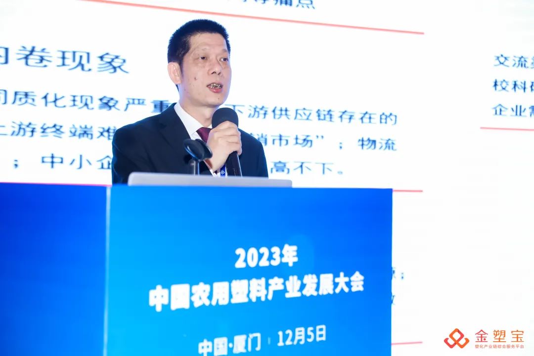 12月5日,中国农塑学会年会暨2023中国农用塑料产业发展大会在厦门隆重召开。本次大会以“智塑农业,稳粮保供”为主题,聚焦农塑行业如何稳粮保供、数字赋能及绿色发展进行深入探讨。全国农业技术推广服务中心党委副书记徐树仁,全国农业技术推广服务中心首席专家、中国农用塑料应用技术学会会长高祥照,中国农业科学院农业资源与农业区划研究所原所长王道龙,清华大学化学工程系教授郭宝华,中国农业科学院二级岗位研究员、国际农业塑料协会主席严昌荣,中国世贸组织非洲委员会主席程志刚及来自农塑行业专家、学者及中国农塑学会的理事等相关代表近300人参加会议。福建金塑宝科技有限公司的数字赋能农用塑料行业成为热点。