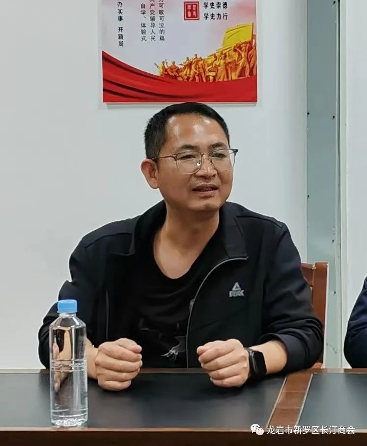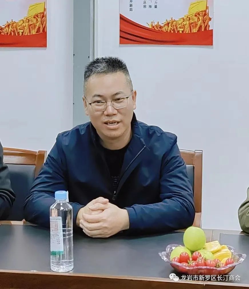副会长兼秘书长陈贞祥代表商会对工商联领导的到来表示热烈欢迎,感谢工商联领导对我商会及党支部的高度关注和关心支持,并汇报了新罗区长汀商会的发展历程、组织架构、工作开展情况以及未来发展规划。