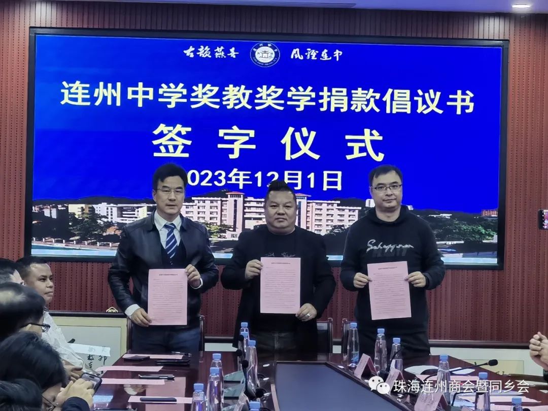 珠海市连州商会也积极参与其中,展现了对母校的深厚情感和支持。珠海市连州商会会长何伟杰参加了政协的捐款倡议书签字仪式,常务副会长魏晓鋒,副会长张灵渠参加了校庆活动,其中,珠海市连州商会会长作为连州中学第一届校友会副会长,捐赠了五万元,展现了商会对母校的关怀与支持。
