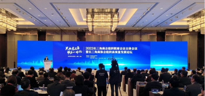 为进一步学习贯彻习近平总书记在深入推进长三角一体化发展座谈会上的重要讲话精神,落实全国工商联组织工作会议精神,务实推动商会组织高层次协同发展,推动长三角区域发展共同体建设,12月5日,由上海市委统战部、“三省一市”工商联(总商会)共同主办的“兴业长三角助力一体化”2023长三角商会组织联席会议全体会议暨长三角商协会组织高质量发展论坛在上海环球港凯悦酒店7楼宴会厅举行。