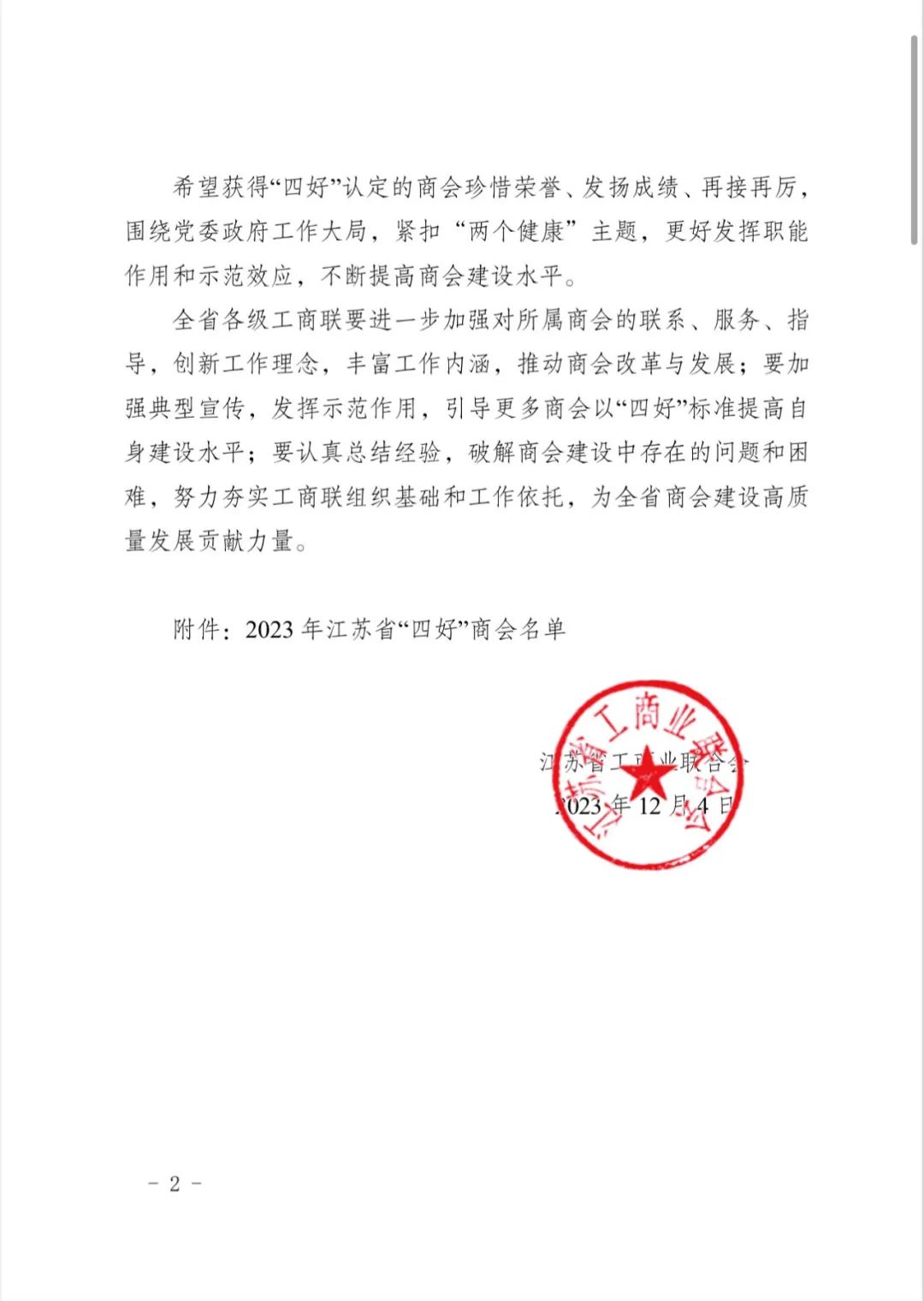 2023年12月4日,江苏省工商联印发了《关于认定2023年江苏省