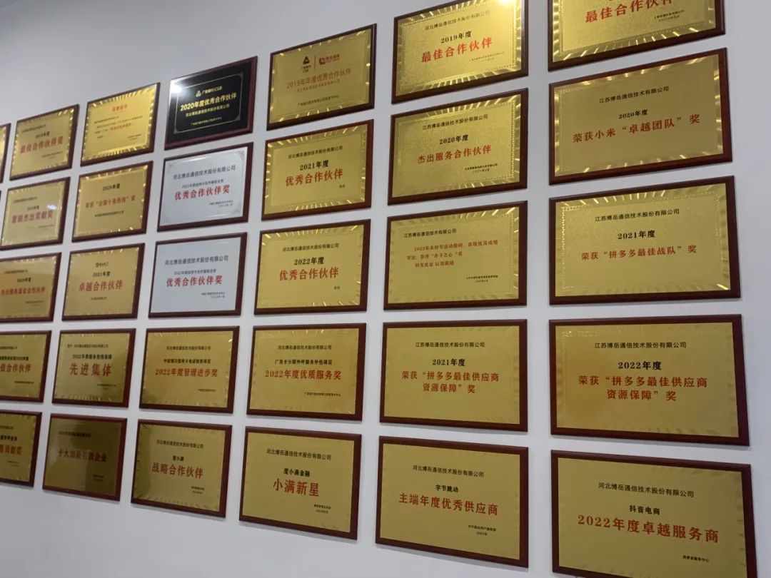 博岳通信连续6年入选河北省民营企业百强榜,获得了客户、社会和行业机构的高度认可,多年连续荣获“中国十佳服务外包奖、中移在线客服生态最佳合作、客服卓越管理、客服专业外包品牌、最佳服营融合、劳动保障诚信优秀企业”等荣誉称号和奖项。