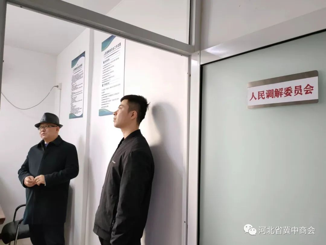 河北省冀中商会会长高艳虎、商会人民调解委员会主任闫金红、调委会成员李新利、高京桃、龚景川、高净等热情接待并就加强商会人民调解委员会工作进行座谈交流。